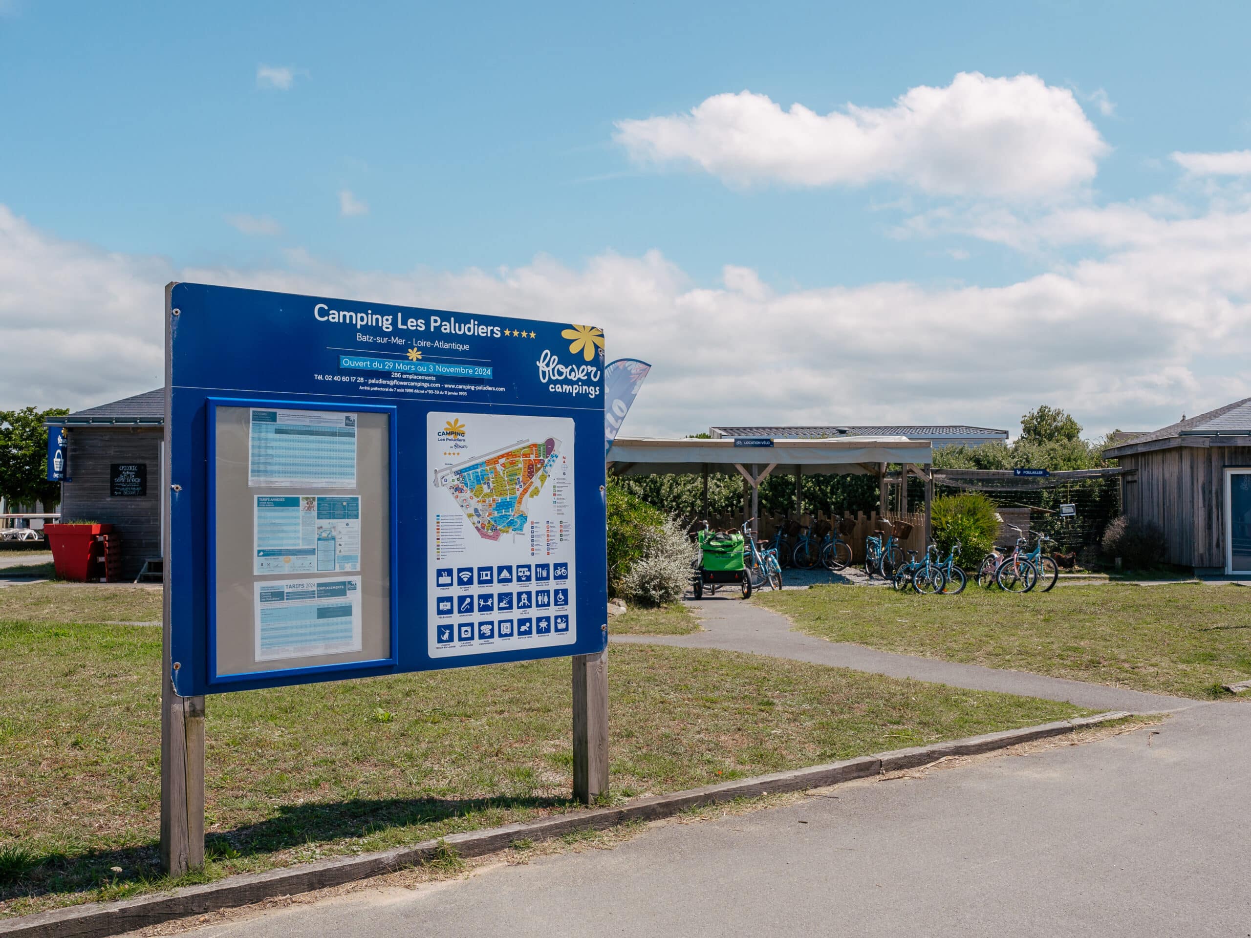 Bienvenue au Flower Camping les Paludiers en région guérandaise ! Ce seront les mots du gestionnaire et de son équipe qui auront le plaisir de vous accueillir à la réception tous les jours. Vous avez une question sur la location de vélos (disponible jusqu’au 23 septembre) ou de barbecues ? Rapprochez-vous de l’un des membres de l’équipe pour vous renseigner ou tout simplement demander conseil sur les sites touristiques locaux à visiter aux alentours. Tout le personnel se fera un plaisir de rendre votre séjour le plus agréable possible !